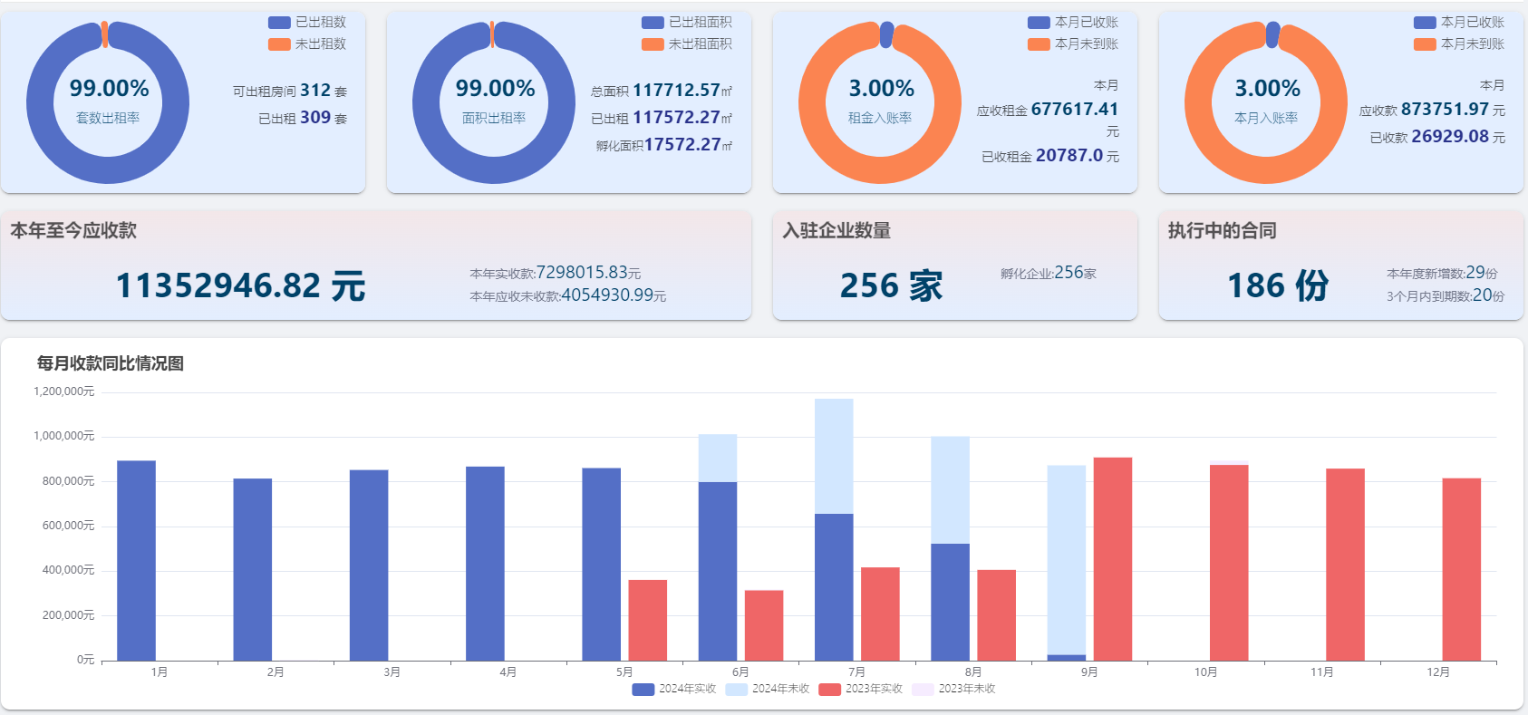 通过平台建设,建立合同和租赁管理信息的电子台账,建立管理合同签订和租赁管理的电子流程,提升了合同和租赁管理工作的效率;平台还实现了收费策略、收费金额、收费日期可定制、设置的功能,可迅速部署在各园区使用。